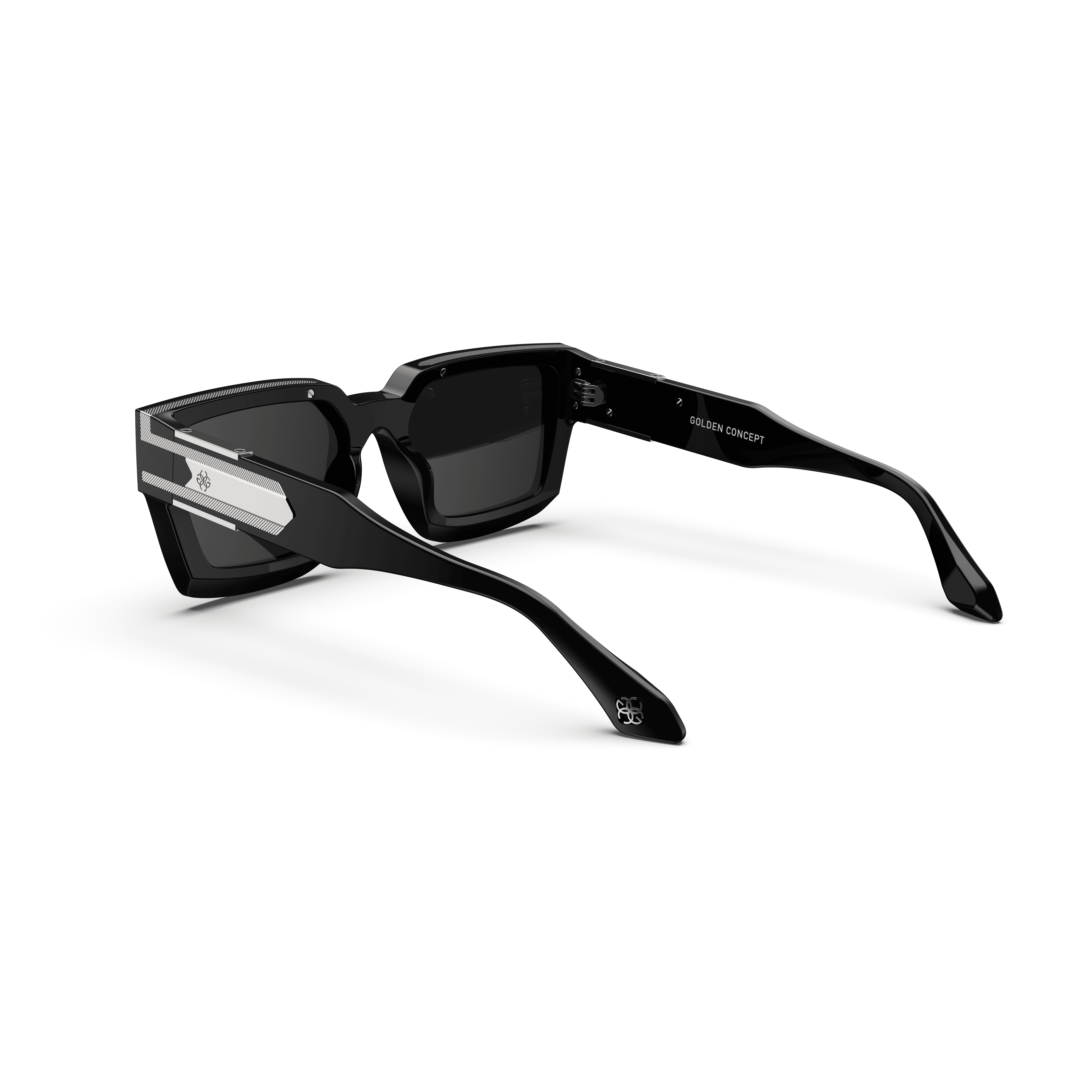 Elevate your style with our “Baller” sunglasses. These shades, in bold black with silver detailing, a GC logo, and unique Guilloché pattern sides, make a statement that reflects your individuality and unmatched confidence. Step out in sophistication and leave a lasting impression.