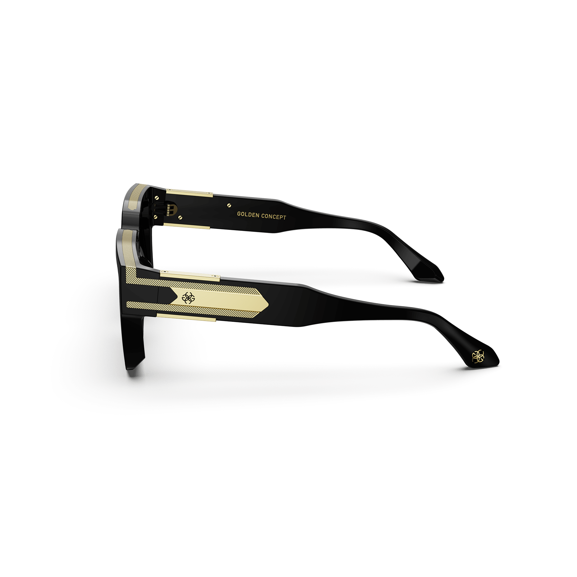 Elevate your style with our “Baller” sunglasses. These shades, in bold black with gold detailing, a GC logo, and unique Guilloché pattern sides, make a statement that reflects your individuality and unmatched confidence. Step out in sophistication and leave a lasting impression.