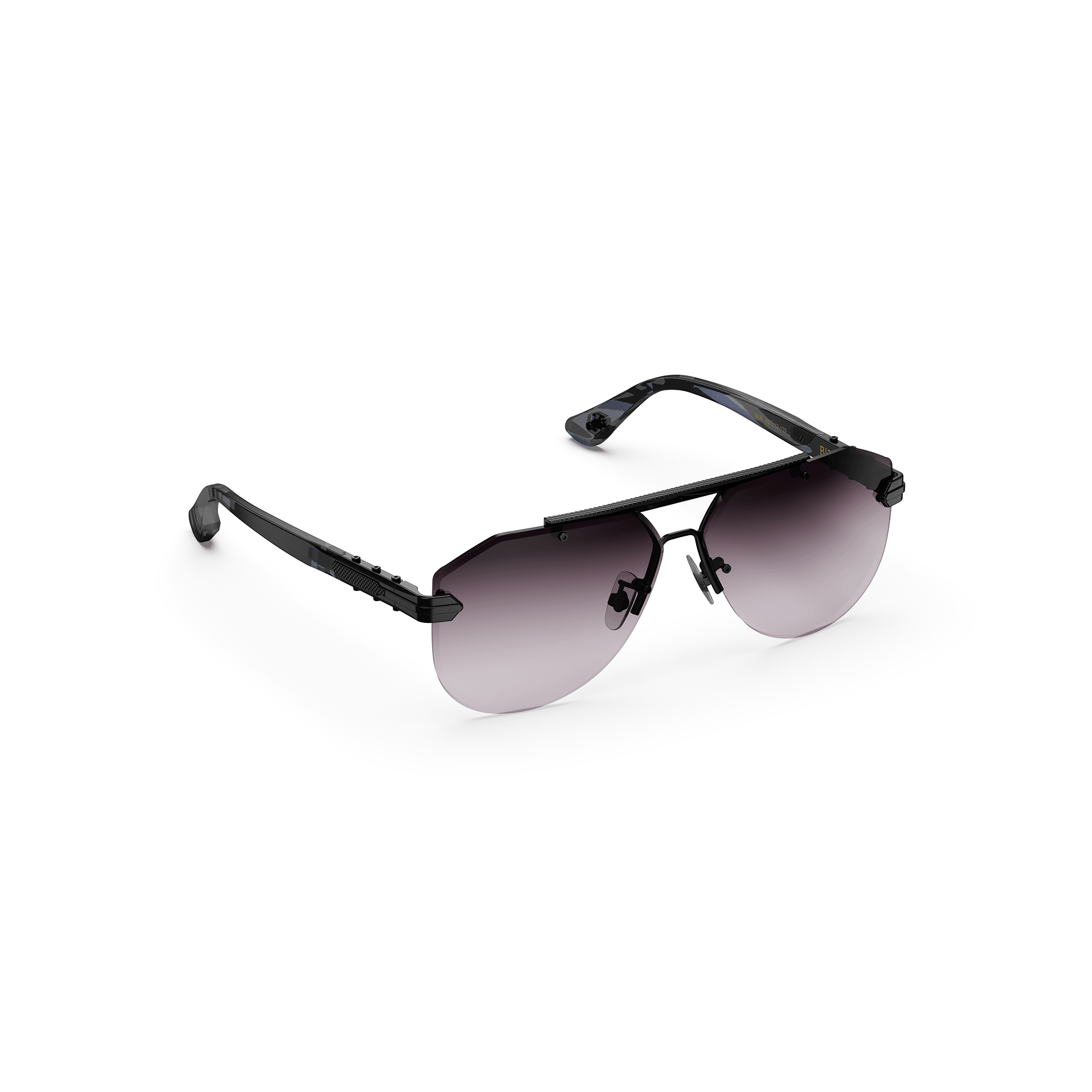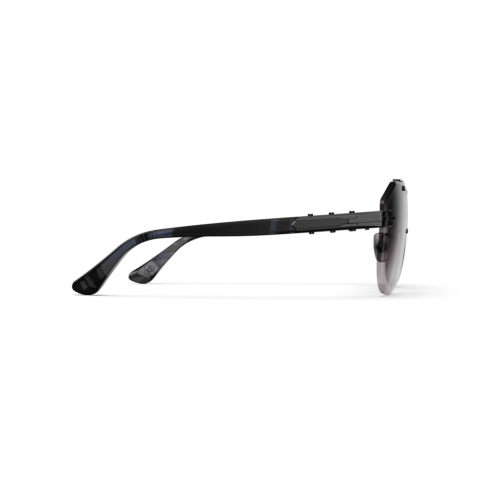 Make a powerful statement with our Aviator-Style sunglasses. These are more than an accessory; they symbolise your success and impeccable taste. Crafted with gray horn strips acetate and a guilloche pattern bridge, they offer graduated gray lenses for both protection and vision enhancement. Make a statement with the perfect blend of craftsmanship, protection, and sophistication.