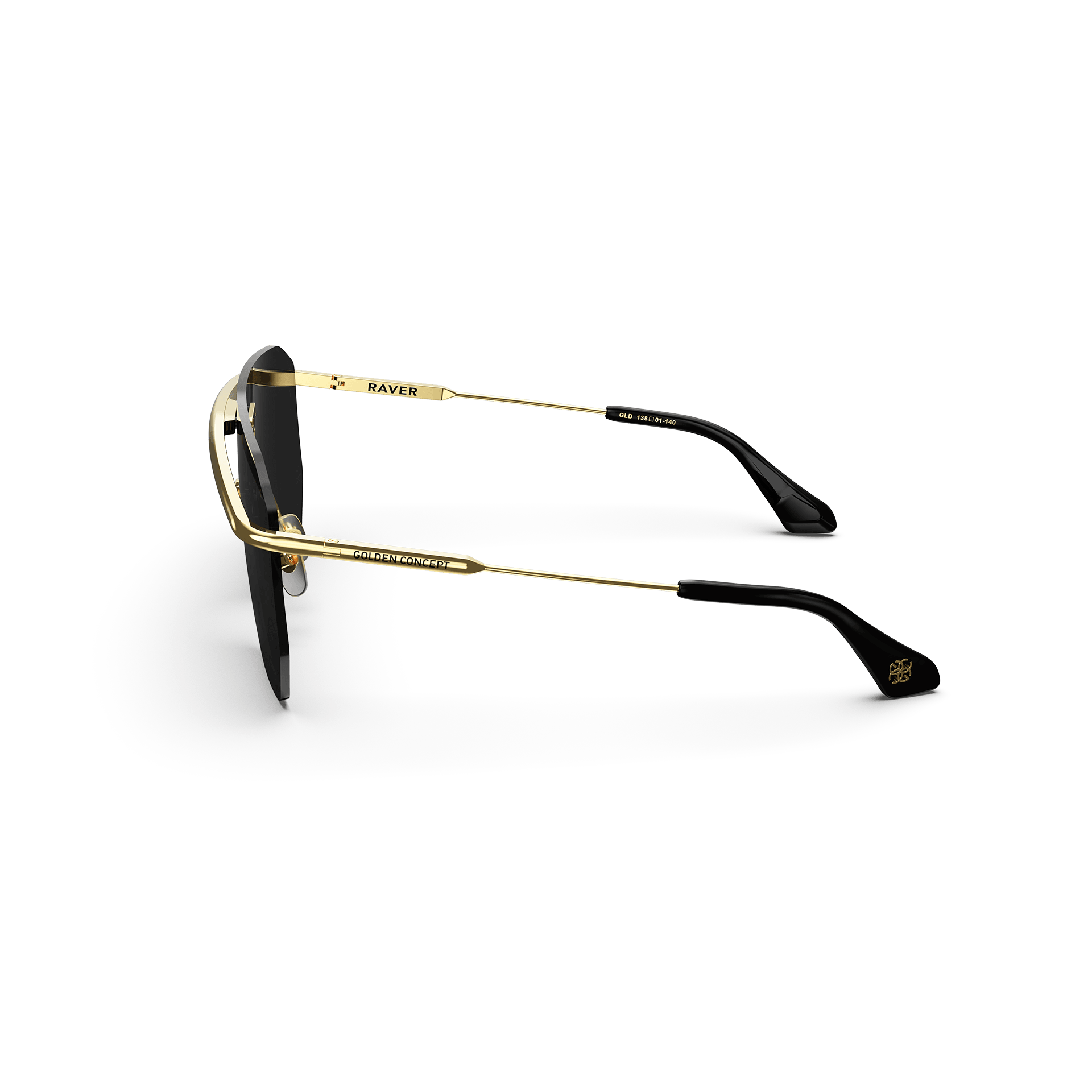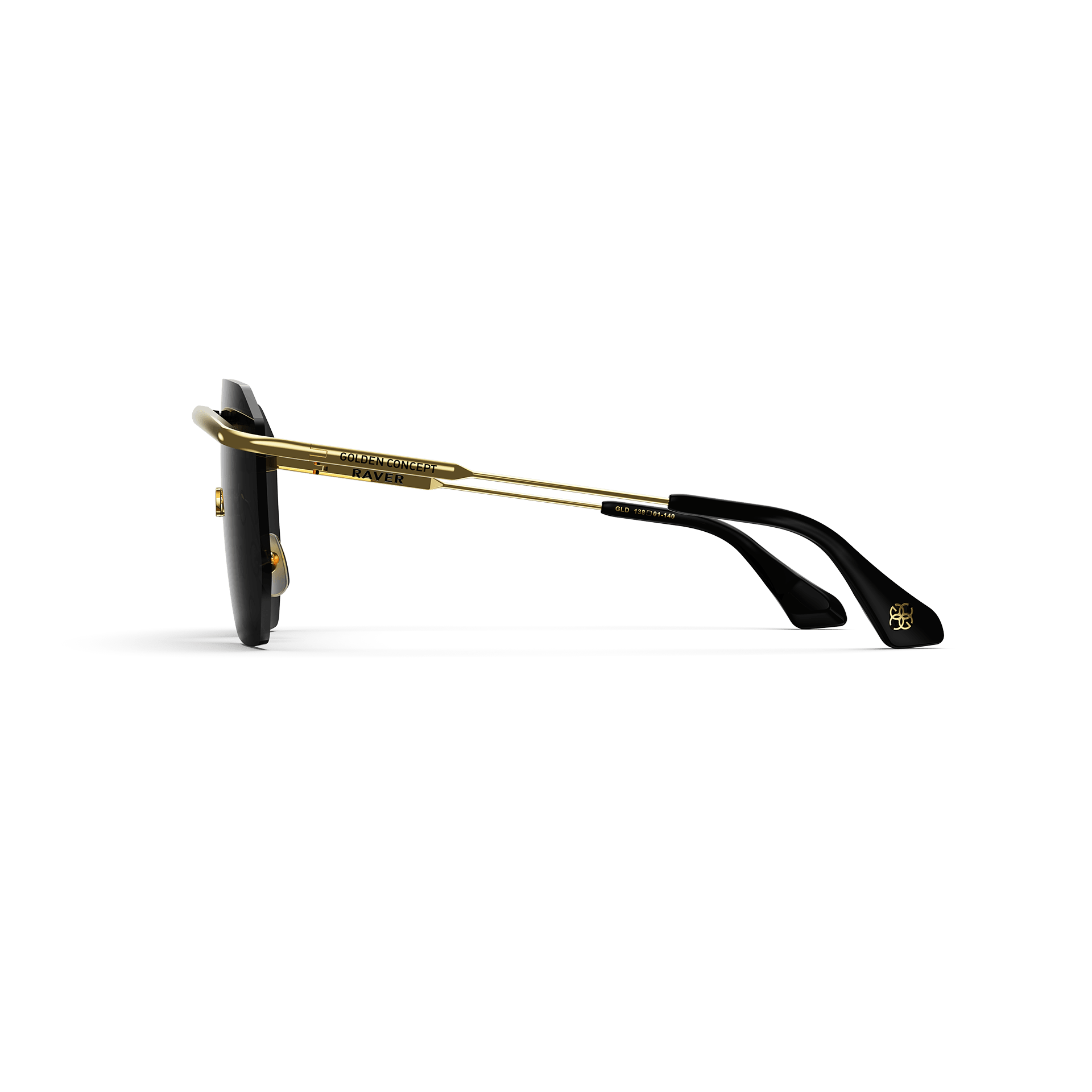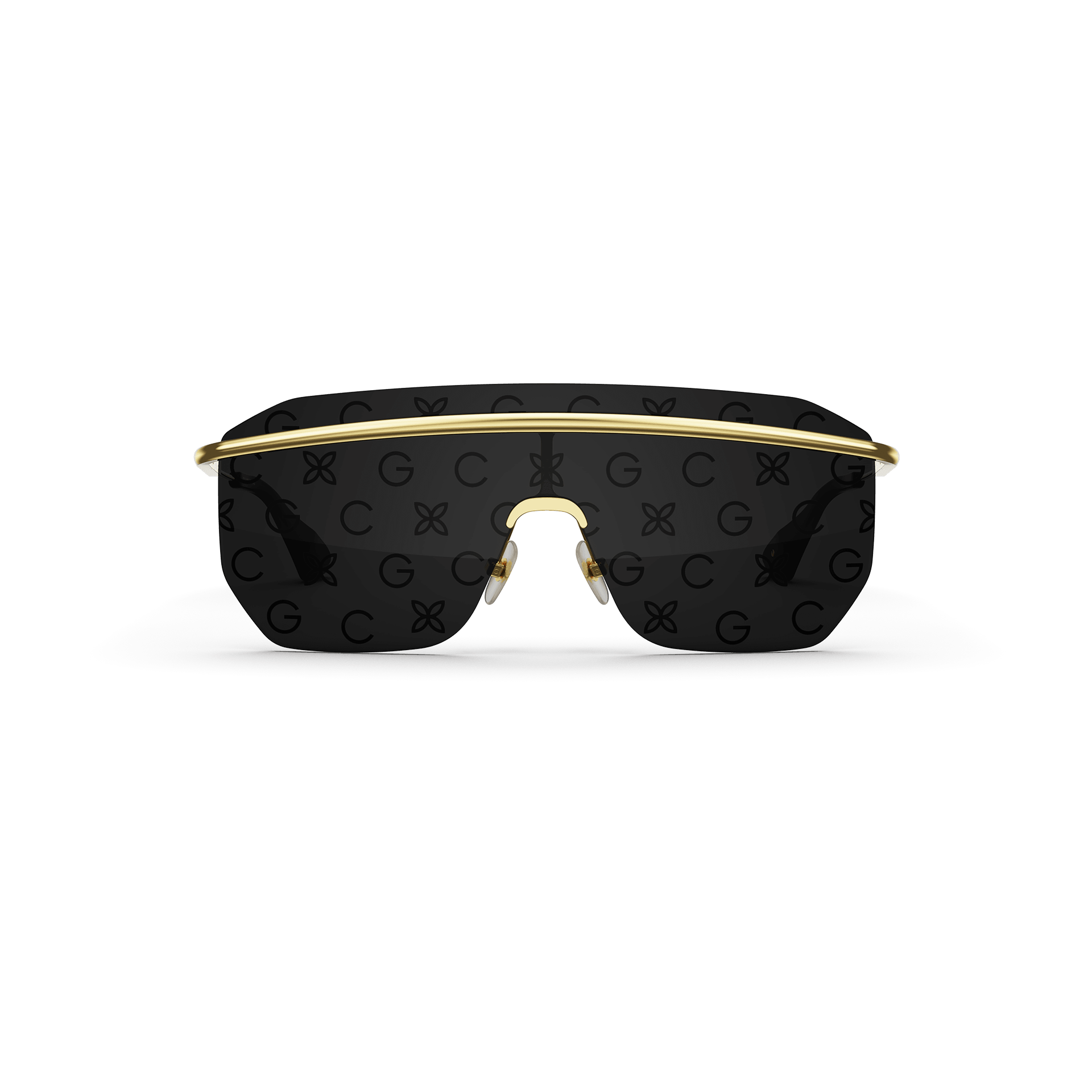 Monogram enthusiasts will admire the sleek design and detailing of these sunglasses. GC’s iconic motif forms an all-over pattern on the lenses, gracefully incorporated into black metal frames and acetate temple tips. The Golden Concepts name is impeccably engraved on the metal temple, adding signature sophistication to this pair of glasses.